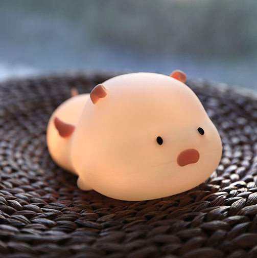 Cute flying pig pat color changing silicone night light cartoon kids sleep companion breathing lamp